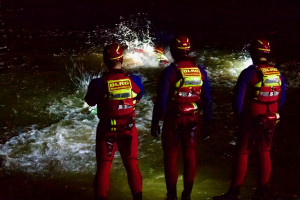 DLRG Sigmaringen und die Freiwillige Feuerwehr Sigmaringendorf trainieren Strömungsrettung