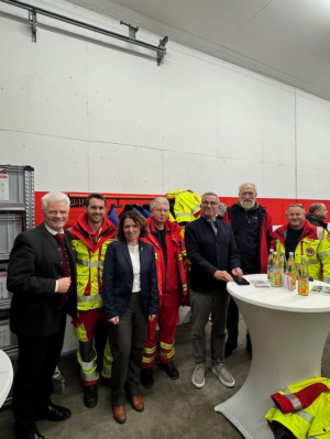 Der Besuch des Innenministers bot den feierlichen Rahmen für die offizielle Indienststellung der Einsatzeinheit und der neuen Rettungswache. Der Termin fand als Stehempfang in der Fahrzeughalle statt. Die zahlreichen Gäste nutzten die Gelegenheit zum Austausch, stellten Fragen und konnten sich ein Bild von der Arbeit der ehrenamtlichen Einsatzkräfte machen.