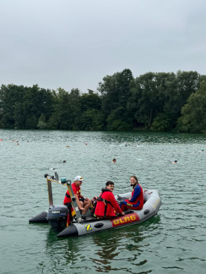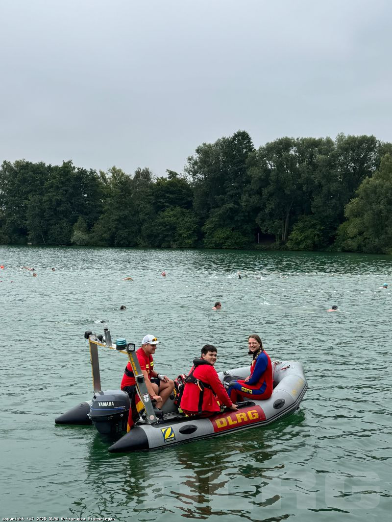 Die DLRG sicherte die Schwimmstrecke mit zwei Einsatzbooten und vier Rettungsschwimmern auf Rettungsbrettern ab. Bereits vor dem Start wurde die Strecke kontrolliert, um Strömungen, Hindernisse und Sichtverhältnisse zu prüfen. Während des Rennens überwachten die Einsatzkräfte das gesamte Geschehen aufmerksam und standen bereit, um bei Problemen sofort eingreifen zu können.