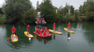 DLRG Bezirk Federsee sichert Schwimmstrecke beim Risstal-Triathlon ab
