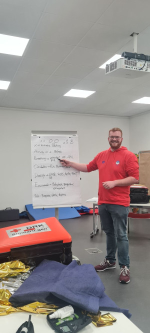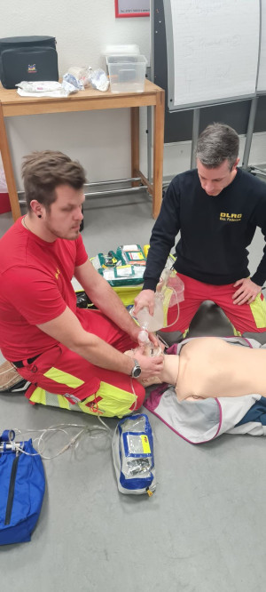 Zum einen gab es eine ausführliche Einweisung in die I-gel(eine Atemhilfe), inklusive Anwendung und typischen Fehlerquellen. Anschließend haben wir das SAMPLER und ABCDE-Schema aufgefrischt und anhand von Beispielen durchgespielt, damit im Einsatz alle Infos strukturiert und sicher erhoben werden können.